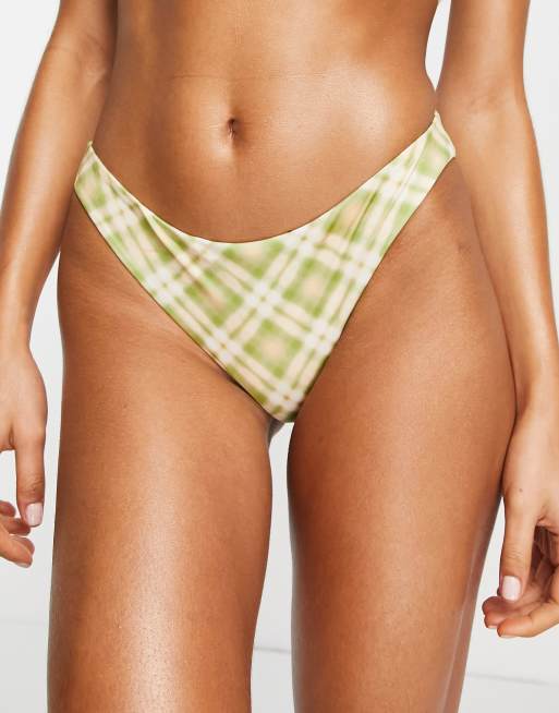 Weekday - Ava - Slip bikini in poliestere a quadri gialli - YELLOW