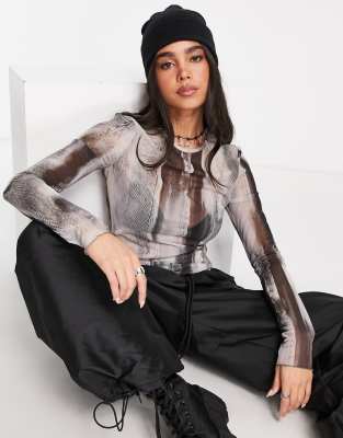 Weekday - Blur - Top a maniche lunghe in rete con stampa