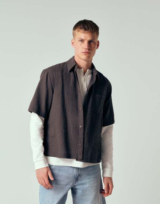 Weekday - Camicia a maniche corte squadrata marrone a quadri piccoli