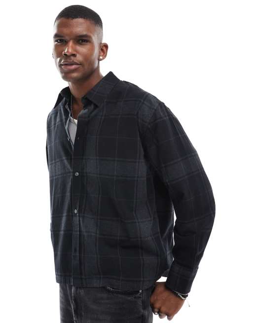 Weekday - Camicia oversize a maniche lunghe in flanella nera a quadri