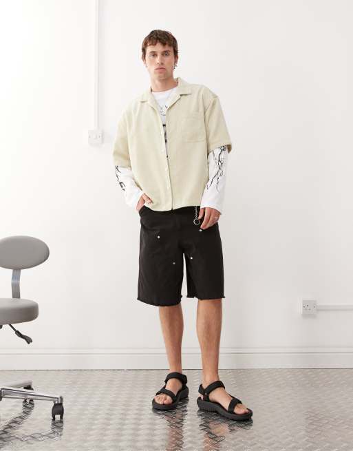 Weekday - Camicia oversize con rever beige in velluto a coste