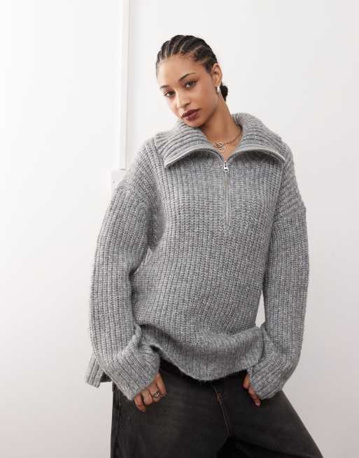 Weekday - Cillia - Maglione grigio mélange con zip corta e colletto oversize