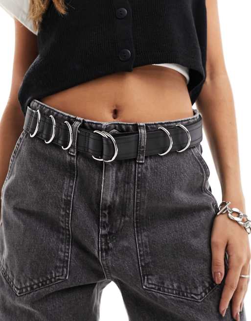 Weekday - Cintura in tela rivestita nera con anelli a D