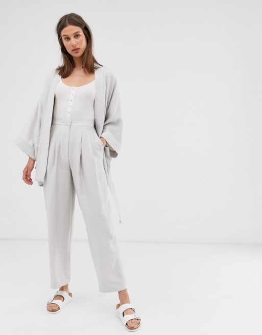 Weekday - Coordinato con kimono e pantaloni sartoriali beige chiaro