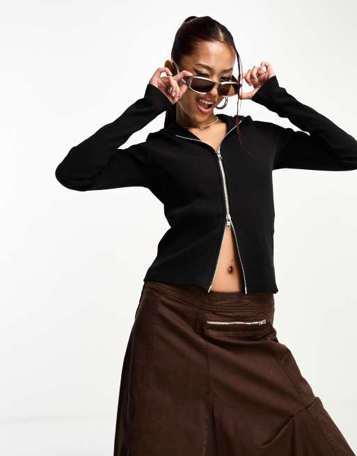 Weekday - Felpa con cappuccio aderente nera con zip