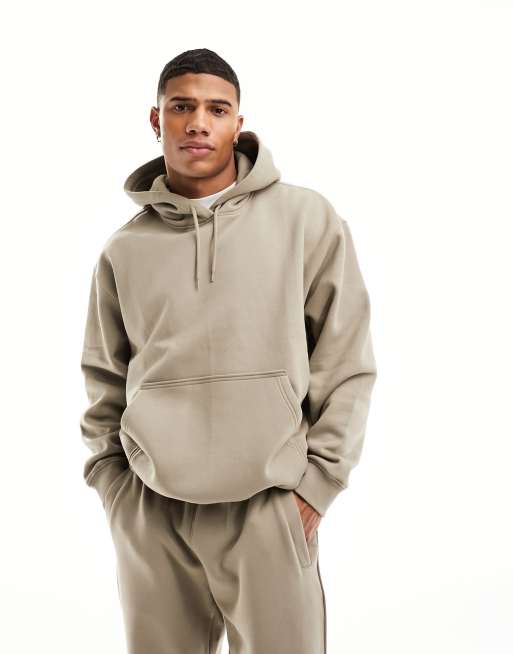 Weekday - Felpa con cappuccio comoda pesante in jersey beige talpa in coordinato