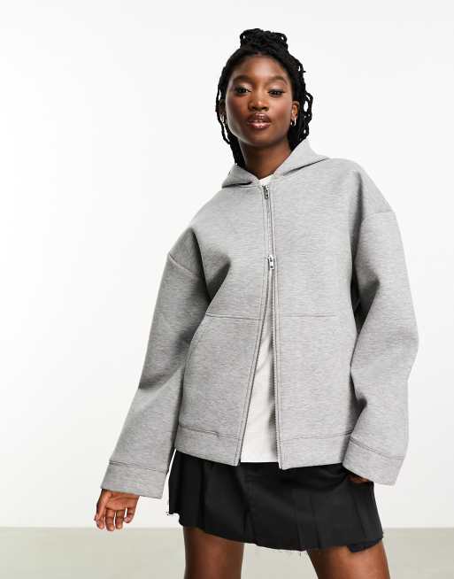 Weekday - Felpa con cappuccio voluminosa in tessuto scuba grigio mélange con zip