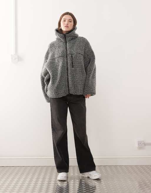 Weekday - Felpa in pile borg grigio scuro oversize con zip e cappuccio