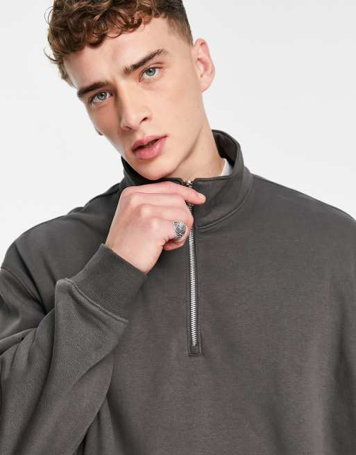Weekday - Felpa oversize nero slavato con zip corta