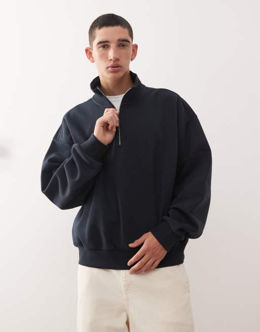 Weekday - Felpa squadrata oversize blu navy scuro con zip corta
