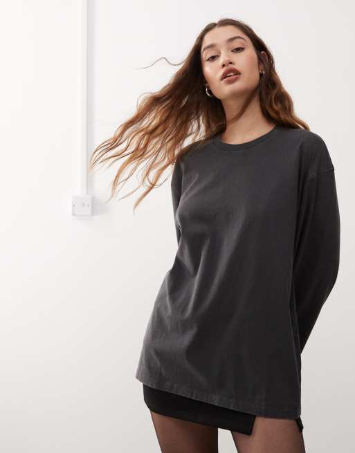 Weekday - Frida - Top a maniche lunghe oversize slavato nero sbiadito