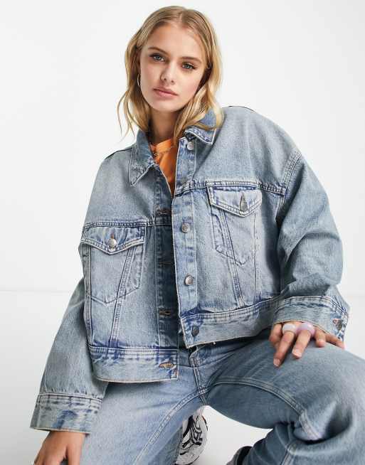 Weekday - Gideon - Giacca trucker lavaggio blu chiaro in coordinato