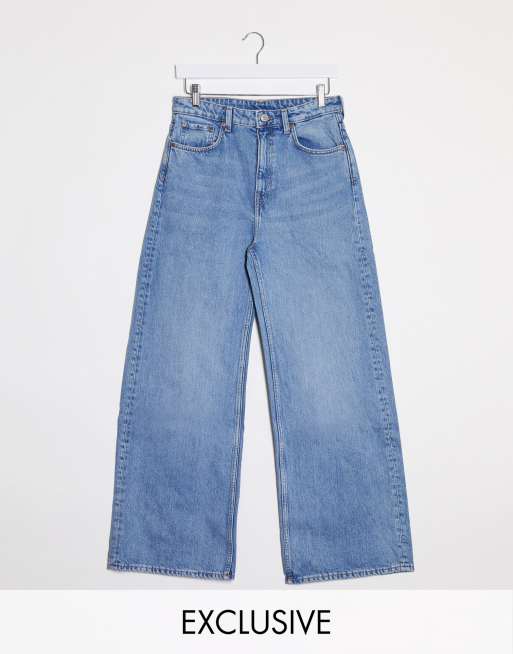 Weekday - jeans a fondo ampio in cotone blu - MBLUE