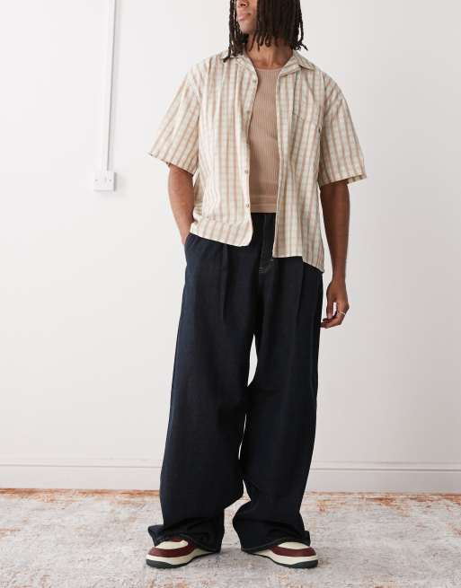 Weekday - Jeans molto ampi con pieghe frontali blu scuro classico