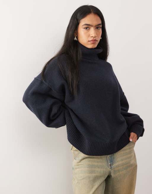 Weekday - Maglione dolcevita premium in lana oversize blu navy mélange