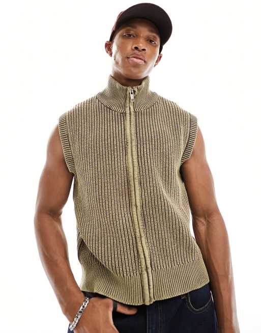 Weekday - Marwin - Smanicato in maglia marrone slavato con zip