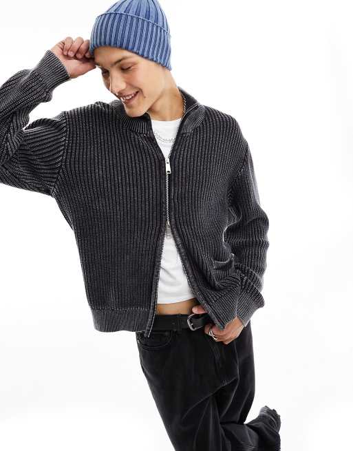 Weekday - Mattias - Cardigan nero slavato a coste con zip
