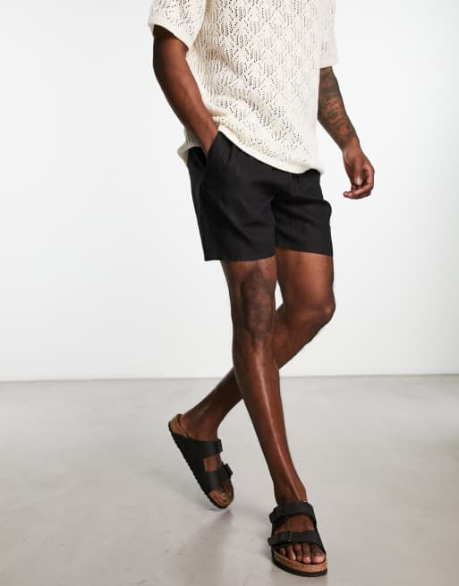 Weekday - Olsen - Pantaloncini regular fit neri in misto lino