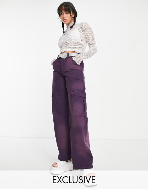Weekday - Pantaloni cargo viola scuro