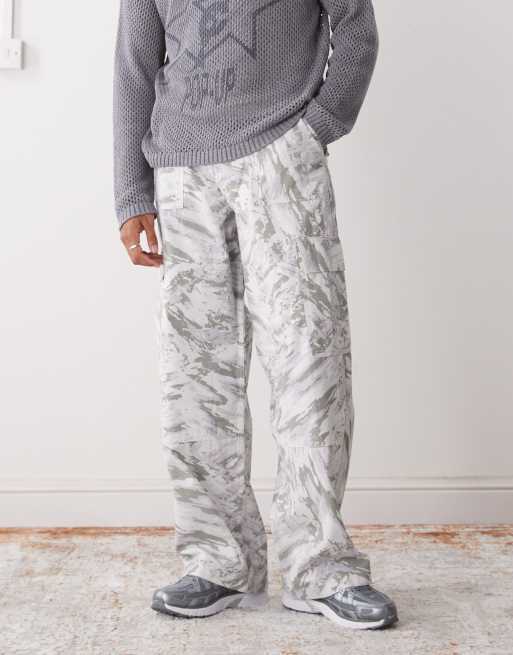 Weekday - Pantaloni oversize cargo bianco sporco con stampa