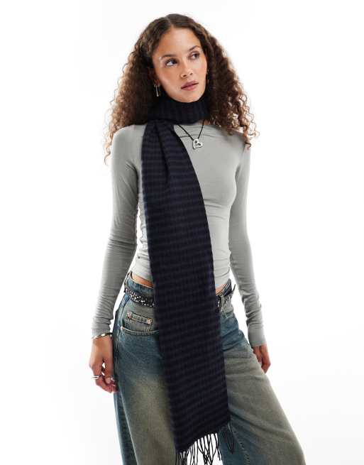 Weekday - Sciarpa nera a quadri in lana premium