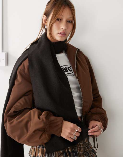 Weekday - Sciarpa premium in lana marrone a spina di pesce