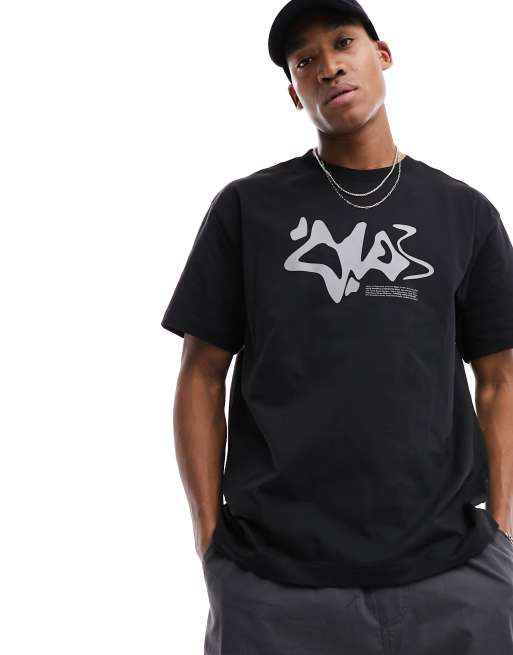 Weekday - T-shirt oversize nera con grafica riflettente