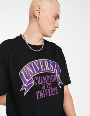 Weekday - T-shirt oversize nera con stampa "Universal"