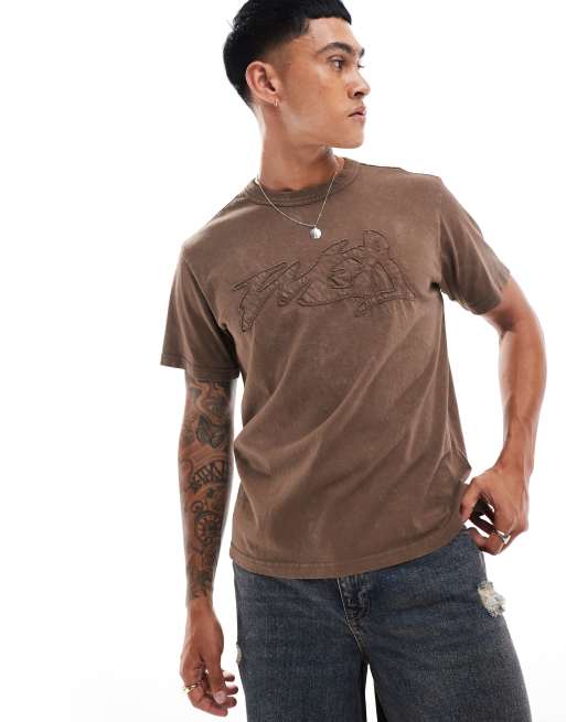 Weekday - Toby - T-shirt squadrata marrone slavato con applicazione grafica