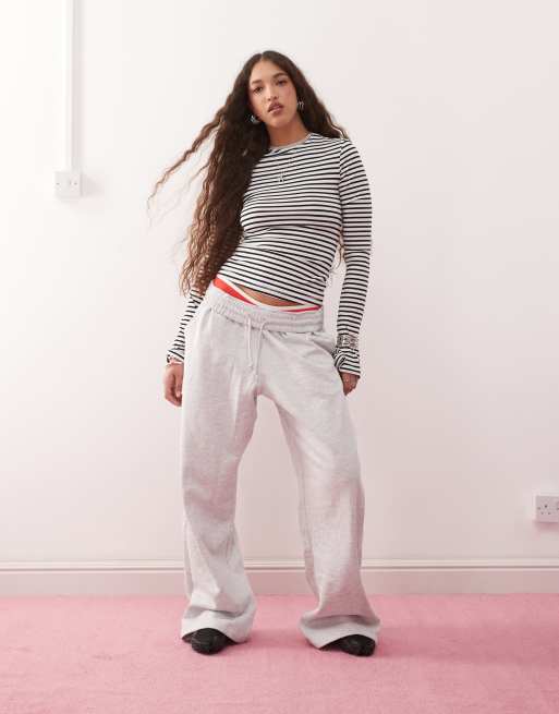 Weekday - Top a maniche lunghe nero e bianco a righe con maniche scampanate