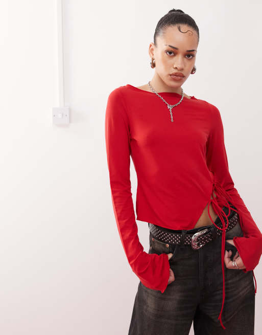 Weekday - Top a maniche lunghe rosso con laccetti laterali