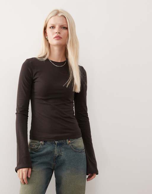 Weekday - Top a maniche lunghe svasate marrone scuro