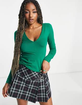 Weekday - Top a maniche lunghe verde con scollo a V