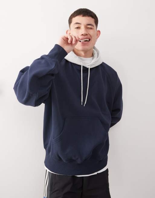 Weekday - Uni - Felpa oversize blu navy con cappuccio a contrasto e maniche raglan