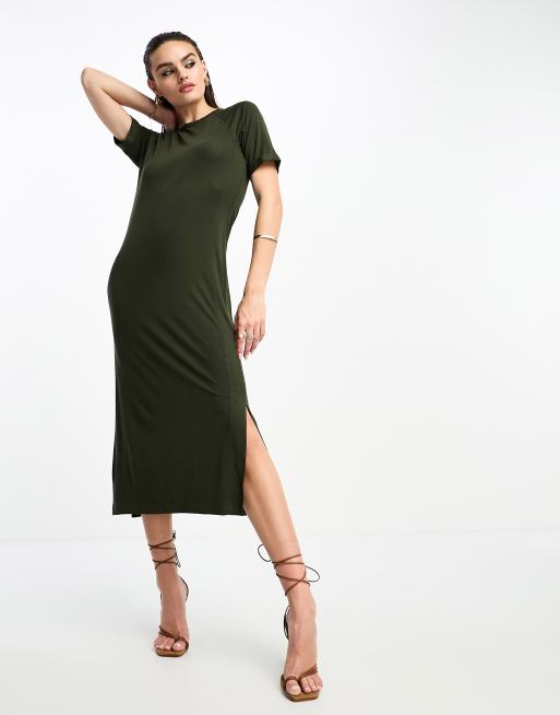 Esclusiva Whistles - Vestito T-shirt in jersey kaki con gonna al polpaccio