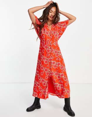 Whistles - Ella - Vestito midi da giorno rosso a fiori