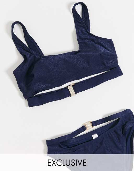 Esclusiva Wolf & Whistle Coppe Grandi - Top bikini corto con cut-out e fibbia blu elettrico - MBLUE