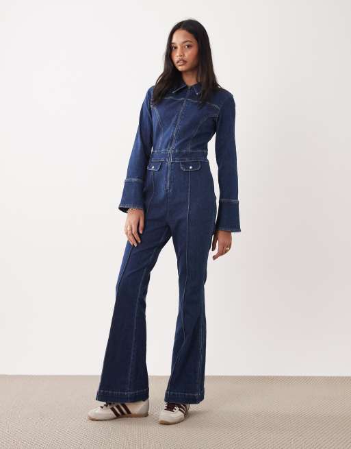 Wrangler - Catsuit di jeans rétro lavaggio blu scuro