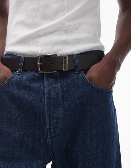 Wrangler - Cintura in pelle marrone scuro con fibbia color bronzo