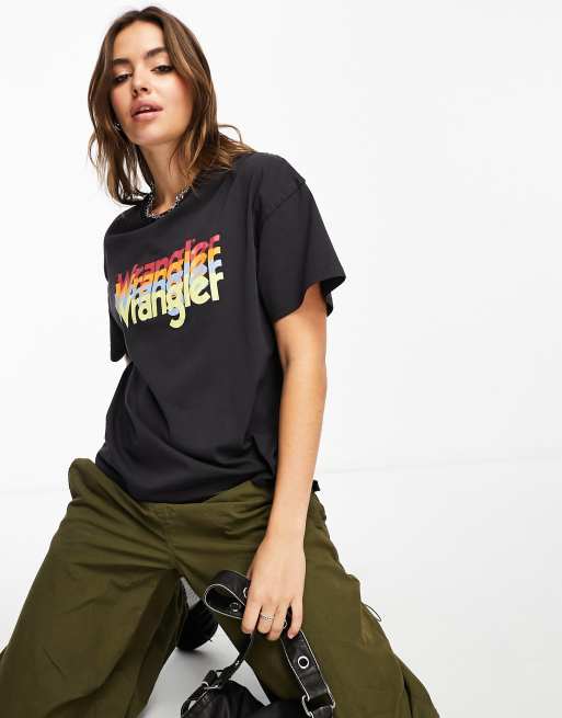 Wrangler - T-shirt girlfriend nero sbiadito con logo rétro