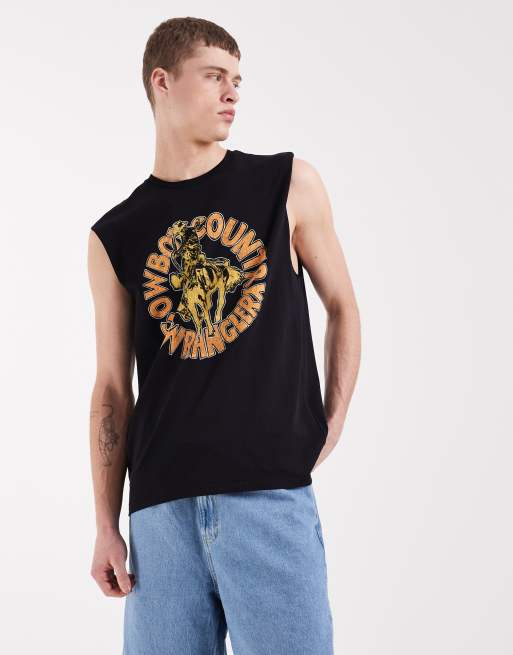 Wrangler - Top senza maniche attillato nero con grafica