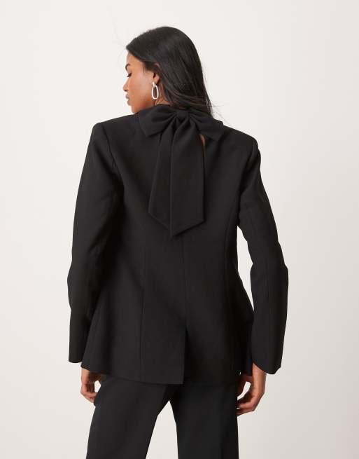 YAS - Blazer nero con fiocco sulla schiena e bottoni in coordinato