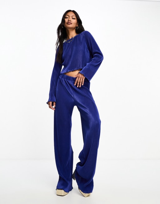 Y.A.S - Coordinato plissé blu con top a maniche lunghe e pantaloni