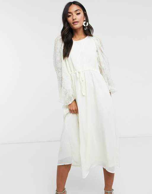 Y.A.S.. - Olivia - Vestito midi con vita arricciata color crema