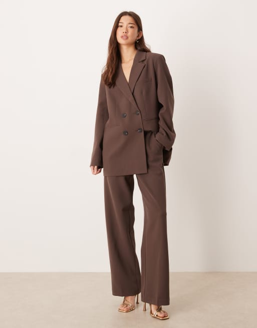 YAS - Pantaloni sartoriali a fondo ampio marrone cioccolato in coordinato
