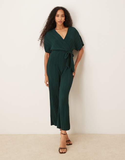 YAS - Tuta jumpsuit allacciata in vita verde plissé