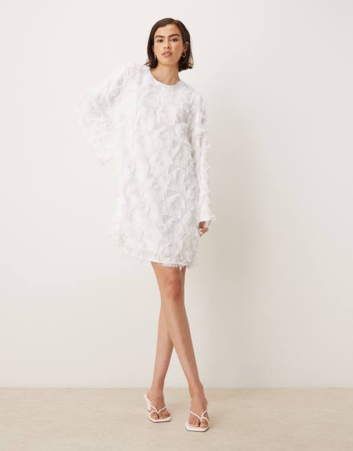YAS - Vestito corto a maniche lunghe testurizzato bianco