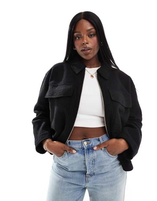 Yours - Camicia giacca corta in lana nera
