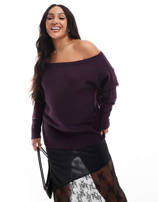 Yours - Maglione bordeaux con spalle scoperte e scollo alla Bardot