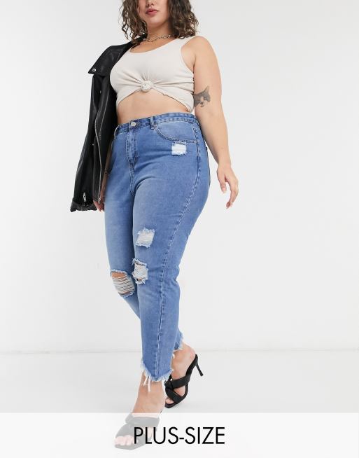 Yours - Mom jeans invecchiati lavaggio blu medio